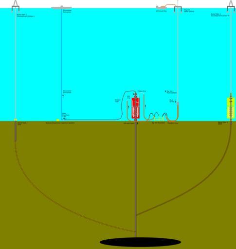 | Keywords: Deepwater Horizon oil spill recovery context.svg this annotated diagram red represents the blowout preventer stack grey represents the oil flow passage see 15 9 and 8 white tubing represents the kill left 10 and choke right 11 lines brown represents the top of the subsea well casing above 15 the five grey rectangles within the lower red shape represent ram-type blowout preventers the two grey rectangles within the upper red shape represent annular-type blowout preventers the orange pipes are flexible hoses connected to various rigid pipes above 10 12 and 13 Key referring to this annotated diagram 1 Relief Well 2 Development Driller II 2 Discoverer Enterprise 3 Kill mud ships 4 Top Kill Helix Q4000 5 Relief Well 1 Development Driller III 6 Mud pumped down by Helix Q4000 7 Relief Well 2 being drilled by Development Driller II 8 Riser Insertion Tube riser to sea surface 9 broken riser from top of blowout preventer BOP 10 Kill line into BOP 11 Choke line into BOP 12 Manifold for kill mud 13 Flexible hose interconnecting the mud pipes and manifold 14 Subsea Dispersion Injection System at end of broken riser 15 Oil well head Own illustration created with approximate reference to the following sources http //www offshore-mag com/index/article-display/323550/articles/offshore/equipment-engineering/us-gulf-of-mexico/cameron-wins-evo-subsea-bop-stack-contract html BP technical briefing linked at http //www offshore-mag com/index/article-display/5210928327/articles/offshore/deepwater-horizon/deepwater-horizon14 html Kent Wells technical update video linked at http //bp concerts com/gom/kentwells_update24052010 htm especially the illustration at time 6 54 BBC diagram at http //news bbc co uk/2/hi/world/us_and_canada/10159626 stm Economist diagram at http //media economist com/images/images-magazine/2010/21/ST/201021STC294 gif Using Inkscape 0 47 2010-05-27 User 84user thumb left Large context with large text font thumb left Large context with largest practical font size thumb left Large context numbered instead of text thumb left Subsea blowout preventer stack with top kill mud lines shown unattached thumb left stack with top kill mud lines attached thumb left stack set up for a top kill plus riser insertion tube thumb left stack in top kill mode plus riser insertion tube and kill mud manifold thumb left large context with small font showing both sea surface and subsea validSVG http //validator w3 org/check uri Created with Inkscape Oceanographic diagrams Blowout preventers Deepwater Horizon oil spill Technical diagrams |