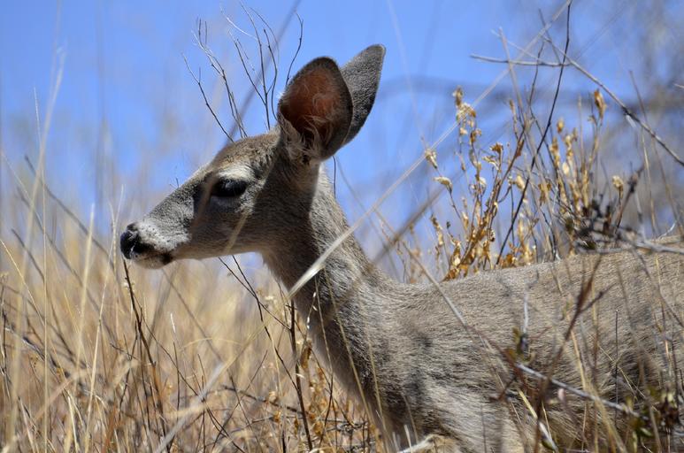 Keywords: deer doe wildlife nature looking grass female portrait head profile