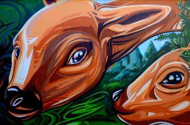 Keywords: deer roe deer ricke kitz head attention graffiti