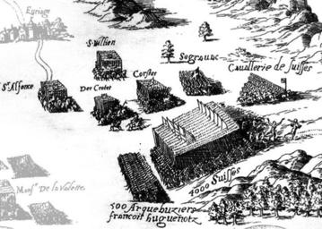 | Keywords: Defaitte des Suisses en Dauphiné det 2.jpg Artwork LangSwitch map representing positions during a battle carte représentant un ordre de bataille Date 1899 11 30 Technique engraving black Musée de l'Ancien Évêché de Grenoble place of discovery object history exhibition history credit line full form Le portrait de la défaite des Suisses en Dauphiné par Monsieur de la Valette title recto top fr full form à Paris à Saint-Germain des prés rue de Seine à l'enseigne de la Croix blanche publisher's mark recto bottom left fr LangSwitch the map is taken from an old book la carte est extraite d ™un ouvrage ancien accession number place of creation own PD-old Defaitte des Suisses en Dauphiné jpg cropped Patafisik cite book Robert Aillaud Robert Aillaud chapter La bataille de Jarrie 19 août 1587 30 cm 978-2-9533-5080-7 Vasti-Dumas 2008 fr Battle of Jarrie Pikemen |