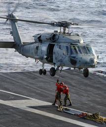 Keywords: Defense.gov News Photo 051103-N-5345W-190.jpg en Sailors aboard the aircraft carrier USS Enterprise CVN 65 connect a set of replenishment slings to the cargo hook of an HH-60 Seahawk helicopter during a vertical ammunition on-load conducted with the aircraft carrier USS Harry S Truman CVN 75 on Nov 3 2005 The Truman is offloading munitions to the Enterprise USNS Arctic T-AOE 8 and the USS Dwight D Eisenhower CVN 69 as the ships operate in the Atlantic Ocean 051103-N-5345W-190 Navy http //www defense gov/photos/newsphoto aspx newsphotoid 7284 2005-11-03 en Petty Officer 3rd Class Kristopher Wilson U S Navy PD-USGov-Military-Navy Defense gov news media for November 2005 Import by User Slick-o-bot/Defense gov News Photos SH-60 Seahawk Taken with Nikon D2X USS Enterprise CVN-65 USS Dwight D Eisenhower CVN-69 USS Harry S Truman CVN-75 flight deck |