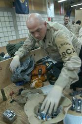 Keywords: Defense.gov News Photo 050301-N-6027E-001.jpg en Navy Petty Officer 2nd Class Jeffrey Oberts performs a customs inspection on a U S Army soldier's duffle bag at Camp Doha Kuwait on March 1 2005 Oberts is a Navy reservist with Navy Expeditionary Logistics Support Force Forward Oscar Bravo Company which is performing the customs mission for the U S Army throughout Kuwait and Iraq 050301-N-6027E-001 Navy http //www defense gov/photos/newsphoto aspx newsphotoid 6210 2005-03-01 en Chief Petty Officer Kevin Elliott U S Navy PD-USGov-Military-Navy Defense gov news media for March 2005 Iraq War Kuwait Import by User Slick-o-bot/Defense gov News Photos Defense gov photos requiring renaming United States Army |