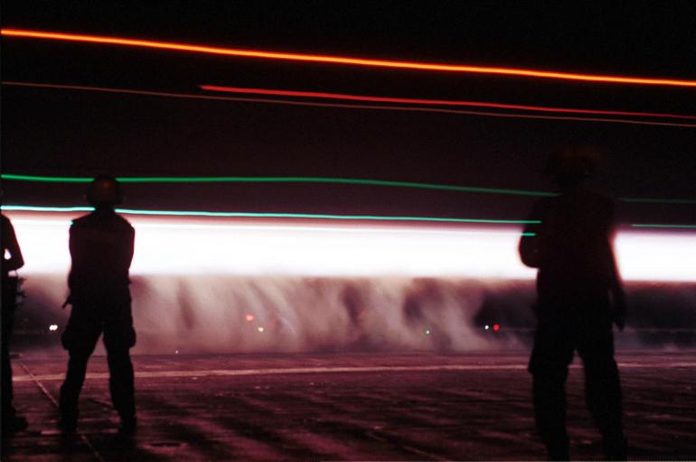 Keywords: Defense.gov News Photo 011007-N-4533L-001.jpg en The night launch of a Navy F-14 Tomcat becomes a trail of steam and light silhouetting the flight deck crewmen on the USS Enterprise CVN 65 on Oct 7 2001 The Enterprise is launching aircraft for strike missions against al Qaeda terrorist training camps and military installations of the Taliban regime in Afghanistan as part of Operation Enduring Freedom The carefully targeted actions are designed to disrupt the use of Afghanistan as a base for terrorist operations and to attack the military capability of the Taliban regime 011007-N-4533L-001 Navy http //www defense gov/photos/newsphoto aspx newsphotoid 3652 2001-10-07 en Petty Officer 3rd Class David A Laviolette U S Navy PD-USGov-Military-Navy Defense gov news media for October 2001 Import by User Slick-o-bot/Defense gov News Photos USS Enterprise CVN-65 flight deck Operation Enduring Freedom Aircraft light trails |