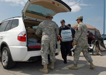 Keywords: Defense.gov News Photo 080918-N-8132M-196.jpg en U S Navy Petty Officer 1st Class Roberto Diesta assigned to the amphibious assault ship USS Nassau LHA 4 and soldiers from the Texas Army National Guard load ice into a resident's vehicle during a disaster response mission in Galveston Texas on Sept 18 2008 The Nassau is anchored off the coast of Galveston Texas to render assistance to other military organizations and civil authorities deployed in support of Hurricane Ike disaster relief efforts 080918-N-8132M-196 http //www defense gov/photos/newsphoto aspx newsphotoid 10582 2008-09-18 en Petty Officer 3rd Class Kiona M McKissack U S Navy PD-USGov-Military Import by User Slick-o-bot/Defense gov News Photos Defense gov photos requiring renaming Taken with Nikon D70s Images from United States Navy to check Texas National Guard Texas Army National Guard USS Nassau LHA-4 Hurricane Ike People with bottles Males with beverages BMW E83 Men with automobiles |
