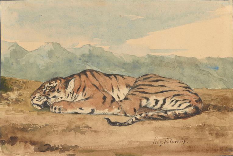 | Keywords: Delacroix - 'Royal Tiger'.jpg en Ferdinand-Eugène-Victor Delacroix Royal Tiger nineteenth century Pen and brown ink and watercolor over pencil The Morgan Library Museum The Morgan Library Museum Ferdinand-Eugène-Victor Delacroix nineteenth century Orientalist paintings by Eugène Delacroix Paintings of tigers by Eugène Delacroix Drawings in the Morgan Library Museum Orientalist paintings of tigers PD-Art | ||||