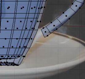 Keywords: DeleteThem1.png Faces deleted to connect handle to body of the cup Own 2009-03-12 BlenderFoundation free screenshot GPL Blender 3D viewports