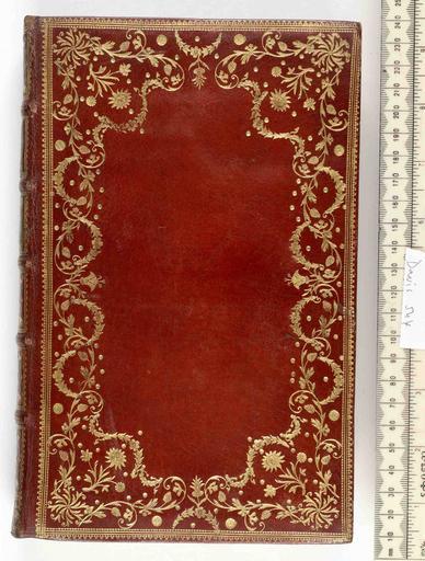 Keywords: Della natura delle cose vol II - Upper cover (Davis544).jpg Style Frame Rococo; Caption Upper cover; Colour Red; Edge Unspecified exhibition history Decorative Technique Tooled in gold; Cover Material Goatskin includes morocco turkey etc Unspecified object history Text 1754; Paris; Unspecified object type Cc-zero place of creation Binding France place of discovery Leon Gruel Manuel historique et bibliographique de l'amateur de reliures Paris 1887 vol I plate opposite p85 relating to binding with Douceur ticket British Library image http //www bl uk/catalogues/bookbindings/LargeImage aspx RecordId 020-000002100 ImageId ImageId 40655 Copyright BL Della natura delle cose vol II Uploaded with GWToolset Della natura delle cose vol II - Upper cover Davis544 http //www webarchive org uk/bldatasets/bindings/6260_4 jpg Bookbinding 18th-century bookbinding British Library Bookbindings |