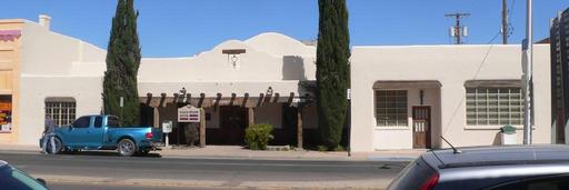 Keywords: Deming, New Mexico, 109 E. Pine from S 1.JPG en Morgan Hall at 109 E Pine Street in Deming New Mexico; seen from the south The building is a contributing property in the Downtown Deming Historic District listed in the National Register of Historic Places 2016-04-10 own Ammodramus other versions cc-zero Pictures by Ammodramus Downtown Deming Historic District Deming New Mexico Built in New Mexico in 1939 Buildings by the Works Progress Administration in New Mexico Pueblo Revival Style architecture |