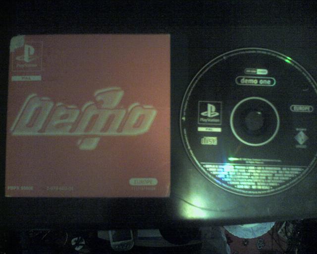 Keywords: Demo one.jpg en Photo of the original EU demo disc that came with the PlayStation games console own Michael Liddell 2008-12-24 PlayStation