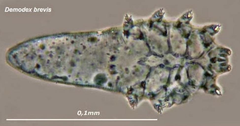 Keywords: Demodex Brevis.jpg pt Fotografia microscópica do ácaro demodex brevis http //patagoniamonsters blogspot com br/2015/05/face-mites-and-peopling-of-america html Austin Whittall Cc-zero