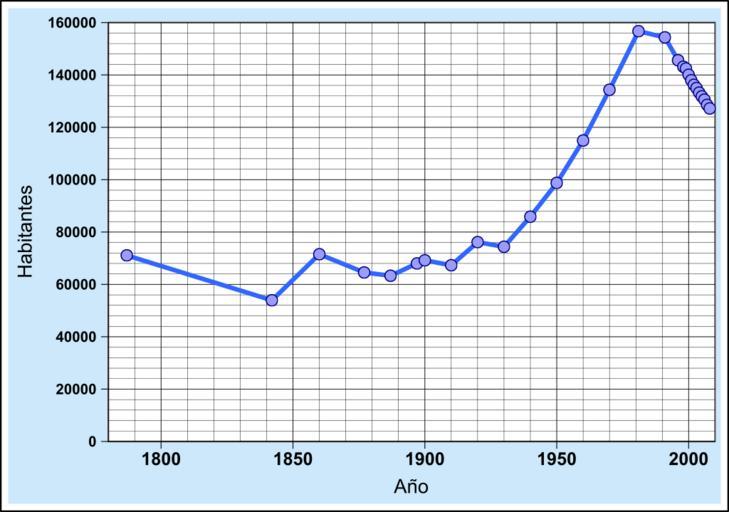 Keywords: Demografía en Cádiz.svg es Es una gráfica que representa la evolución de la población en la ciudad de w es Cádiz en los últimos dos siglos own Para la realización del gráfico se han tenido en cuenta los datos ofrecidos por el w es Instituto Nacional de Estadística España y para los datos antiguos el w es Censo de FloridaBlanca Rodriguín lunes 11 de mayo de 2009 Dominio público No existen Statistics of Cádiz