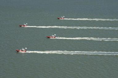 | Keywords: Demonstration of swarmboat technology 140813-N-RZ218-007.jpg en Four unmanned remotely operated high-speed maneuvering surface targets move to their blocking positions during an Office of Naval Research-sponsored demonstration of autonomous swarmboat technology on the James River in Newport News Va During the demonstration as many as 13 Navy boats using an Office of Naval Research-sponsored system called CARACaS Control Architecture for Robotic Agent Command Sensing operated autonomously or by remote control during escort intercept and engage scenarios U S Navy photo by Mass Communication Specialist 2nd Class John Paul Kotara/Released 2014-08-13 John Kotara https //www dvidshub net/image/1601624 140813-N-RZ218-007 2014-10-06 22 36 NEWPORT NEWS VA US PD-USGov-Military-Navy Office of Naval Research Images from DoD uploaded by Fæ |