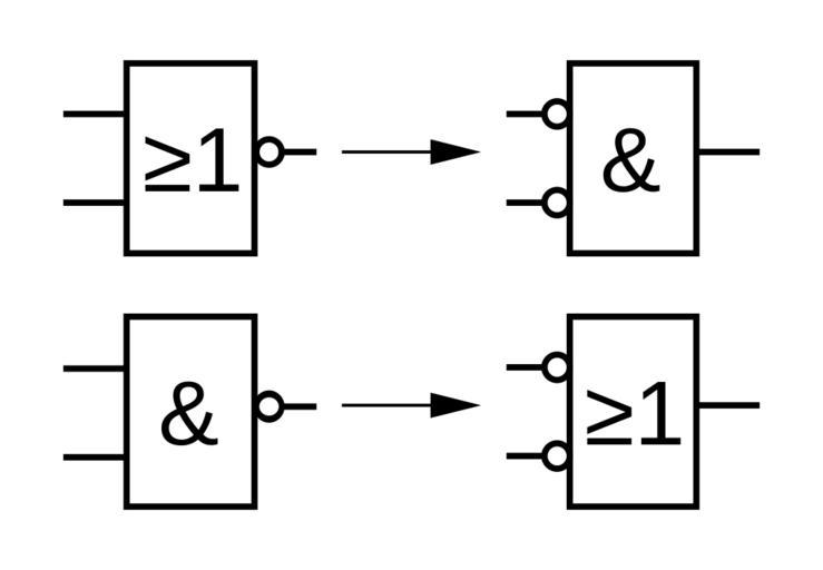 Keywords: DeMorgan Logic Circuit diagram DIN.svg en De Morgan's laws as Circuit de De Morgansche Gesetzes dargestellt mit Logikgattern own MichaelFrey Logic gates