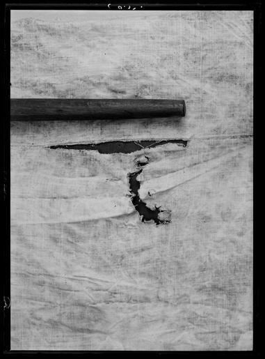 Keywords: Den yttersta av Gustav II Adolfs Lützenskjortor - Livrustkammaren - 954.tif LSH artwork sv Rester av skjorta i 3 delar ryggstycke med en bit av kragen v framstycke med kragstycke och större delen av ärmen samt h framstycke med kragens främre halva och en del av bakstycket <br/><br/>1 Ryggstycket med en bit av kragen <br/>Skjortans vådbredd har i h ö sida utökats med en våd av 460 mm som tillför plagget en bredd av 230 mm på resp fram- och bakstycket På ryggsidan är denna fåll gjord som stad mot stad - sammankastad fåll från avigsidan av plagget 7 kaststygn åt v med H-tvinnat lingarn Av denna fåll finns nerifrån kantfållen kvar 350 mm sedan har sannolikt från sprundet klippts och rivits en stor lucka av sömmen saknas 360 mm sedan kommer på nytt ett 630mm långt stycke av kastfållen Okstycket är här blott ett oregelbundet klippt stycke med snedklippt överkant På V sida som rivits av utefter sidfållen - fällsömmen finns blott ytterligare ett stycke av ärmspjället kvar och en liten bit 40 mm av dess söm mot ärmen Spjällets kant är här 150 mm Fållen sydd med h-tvinnat lingarn med 6 stygn /cm och drygt 1 mm bredd Av kragen återstår i underkanten en 145 mm lång bit Upptill blott en 100 mm lång bit där spetsen sytts fast med 8 stygn kast- åt V/cm med H-tvinnat lingarn Kragen är 670 mm hög I kragen har ca 16 rynkor stripats och 7 kaststygn åt H sytts ned på rätan och ca 7 stygn/cm i de tättplacerade parallella garneringssömmarna Hela arrangemanget är ej mer än 3 mm brett H-tvinnatlingarn har använts till garneringssömmarna Den breda uddspetsen med bl a flätslag är 50 mm bred den smala 15 mm Den breda har en rapport av ca 24 mm <br/><br/>2 Ett stycke av skjortans V framsida med kragstycke och större delen av ärmen <br/>Största längd fram är från kragens underkant max 530 mm och 140 mm halssprund finns kvar Här är också vådbredden bevarad mellan halssprund och ärmsöm Av ärmsömmen finns det 290 mm kvar varav 220 ovanför spjället som alltså är bevarat som en 70 mm bred remsa och här är spjället klippt snett ½ våden verkar då att vara 595 à 600 mm bred på v bröstsida Slätt parti fram på axeln är ungefär 200 mm enligt detta stycke att döma Ärmmanschetten är 45 mm bred med stripade veck ca 12 veck/cm och 7 stygn såväl mellan dessa som i de 2 garneringsraderna hela dekorens bredd 3 mm Spetsen är densamma som på kragen Manschettstyckena är mycket blodiga <br/><br/>3 H framstycke fr o m halssprundet med kragens främre halva och en del av bakstycket av kragen hela axelsömmen samt en övre del av ärmen med spjället - som dock har en reva En ände till1150 mm nående remsa finns av skjortans framstycke från axelsömmen räknat Nederst är denna blott 110 mm bred och då den tydligen har klippts av när tyget redan låg veckat är dess kant uddig souvenir Axelsömmen är 160 mm och sneddad så att den är 130 mm vid axeln men krymper till blott ett par mm vid halsen På rätsidan är det ryggstycket som går över framstycket 3 sömmar med 7-8 stygn/cm Det övriga tyget - de ca 420 mm har rynkats samman i kragen till 100 mm Fällsömmen som förenar framstyckets med sidovåden är gjord för att bli särskilt smidig från skjortans insida med 7 kaststygn åt V gjort från rätan över staden Fållen är blott millimeterbred Av kragen finns i nederkanten en 160 mm lång bit I överkanten är den dock inte mycket mer än 130mm från hörnet räknat Längs överkanten står den smala uddspetsen upp och den löper utefter halssprundet mitt fram På kragens horisontella del är från överkanten och nedfallande en bredare uddspets fästad <br/><br/>Gemensamt <br/><br/>Av linnelärft med trådantal 43 varptrådar x 44 inslagstrådar / cm2 sammanfogad av framstycke bakstycke b 1470 mm sidstycke samt ärmar ärmspjäll krage och ärmlinningar I sidorna har nertill ämnats ca 510 mm höga sprund staden är synlig här i v sida Skjortans bålparti är rakt tillskuret Nedtill har skjortan fållats upp med en 15-20 mm bred fåll sydd med 5 à 6 stygn/cm av H-tvinnat lingarn De rektangulärt tillskurna ärmarna blott den v någorlunda bevarad är 610 mm långa och 460 mm breda och garnerade med 3 rader knappt 20 mm breda vita knypplade mellanspetsar påsydda med ca 100 mm mellanrum Ärmarna är fastsydda i skjortans sidsöm på v sida där staderna stöta mot varandra I h sida har man klippt upp ett 390 mm långt sprund för ½ ärmbredden 230 mm + spjäll 160 mm 390 mm Nedanför ärmstycket har alltså ett spjäll med ca160 mm sida sytts fast Ärmarna är alltså isydda helt normalt och inte som Anna Maja Nylén förmodat enligt en mer egendomlig konstruktion så att ärmen skulle nå ända fram till halslinningen <br/><br/>Axelsömmarna är i det allra närmaste helt raka de yttersta 165 mm Man har blott vikt ner fållarna något bredare mot axeln än mot halsen ca 5 mm differens Härefter har ll återstående vidd rynkats in i den dubbelvikta knappt 70 mm håga kragen som är ca 400 mm lång så att frampartierna av skjortorna fördelats på kragens främre decimeterlånga stycken medan ryggstycket rynkats i kragens bakre 200 mm <br/><br/>Halssprundet är klippt upp vertikalt i framstycket l minst 270 mm synligt i h sida där spetsgarneringen bevarats en 15 mm bred uddspets Dessutom kan påpekas att sprundet ej placerats helt symmetriskt mitt på skjortans framstycke utan med ett par centimeters förskjutning åt h då det klippts ca 600 mm från v sidsöm och 230 + 350 580 mm från h sida Dekor av en 15 mm bred uddspets rapport 20 mm Överst på kragen är denna typ av spets fastsydd för att stå upp som en avslutande kant På kragens utsida är kant i kant med den smala spetsen och nedåt en bredare uddspets fastsydd Denna är 50 mm bred och har en rapport av 22 mm motivet påminner om solfjädrar <br/><br/>Kragens garneringssömmar sydda med efterstygn i 2 parallella rader med 7 stygn/cm och 16 rynkor av sk