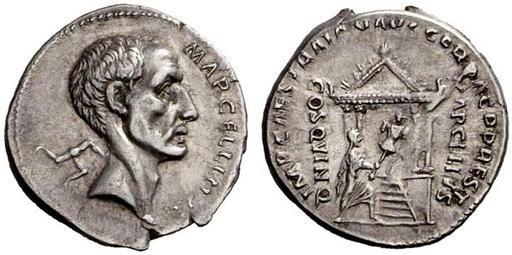 | Keywords: Denarius of Marcus Ulpius Nerva Traianus.PNG  ru Дена ий  еституционная монета Т аяна се еб о Дата чеканки 98 117 гг  онетный дво Рим вес 3 47 г диамет 20 мм АВЕРС MARCELLINVS  голова консула  Клавдия  а целла вп аво; сзади  фигу а из т ех ног trisceles РЕВЕРС IMP CAES TRAIAN AVG GER DAC P P REST  консул  а целл посвящает галльскую добычу в х ам Юпите а Фе ет ия В поле слева и сп ава MARCELLVS COS QVINQ Ссылки RIC II 809; BMC RE III 689; BMC RR II 4206; Sydenham CRR 1147; Babelon Claudia 11/Cornelia 69; RSC II 35 VF £470 ; Mattingly NC 1926 35 and PC XII 16 http //ancientrome ru/numizm/catalog/coin htm id 379 Author I century A C Denarius Marcus Claudius Marcellus consul 222 BC Coins of Traianus Triskelion Sicily PD-old |