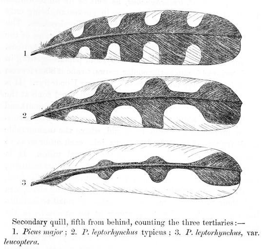 Keywords: Dendrocopos major & Dendrocopos leucopterus feathers 1875.jpg <br /> « Picus major » Dendrocopos major Great Spotted Woodpecker - feather « Picus leptorhynchus Picus leptorhynchus var leucoptera » Dendrocopos leucopterus White-winged Woodpecker - feather <br /> « Picus major » Dendrocopos major Pic épeiche - plume « Picus leptorhynchus Picus leptorhynchus var leucoptera » Dendrocopos leucopterus Pic à ailes blanches - plume http //archive org/stream/ibis53brit page/488/mode/2up The Ibis ser 3 vol 5 creator John Gerrard Keulemans 1875 PD-old-100 Dendrocopos major feathers Dendrocopos leucopterus Picidae feathers Ibis 1875 |