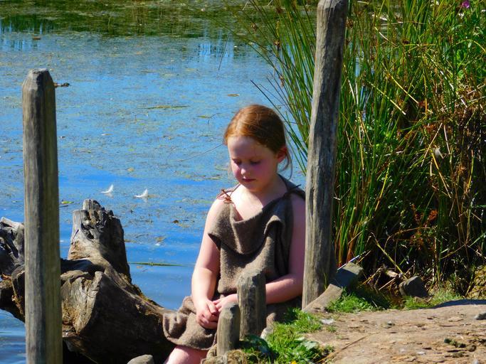 Keywords: denmark little girl vikings viking village lake viking viking life village viking museum