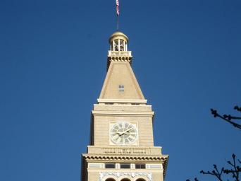 Keywords: denver colorado downtown city clock tower denver skyline building sky blue
