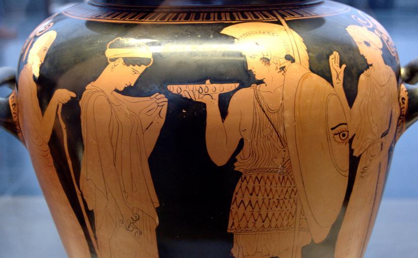 | Keywords: Departure warrior Staatliche Antikensammlungen 2415.jpg Kleophon-Maler Kleophon Painter Kriegerabschied Seite A von einer attischen rotfigurigen Stamnos 440-430 v Chr Aus Vulci Warrior leaving home Side A of an Attic red-figure stamnos 440 “430 BC From Vulci Départ du guerrier Face A d'un stamnos attique à figures rouges 440-430 av J -C Provenance Vulci H 43 5 cm; D 24 5 m Museum Staatliche Antikensammlungen Room 3 Beazley ARV2 1143 2; 1684 object history credit line accession number Inv 2415 User Bibi Saint-Pol own work 2007-02-10 other versions Warrior departures in ancient Greek pottery Linothorax Phialai in art Libation in ancient Greece and Rome Kalos inscriptions Stamnoi Kleophon Painter Red-figure pottery in the Staatliche Antikensammlungen Staatliche Antikensammlungen - Room 3 440s BC pottery in Germany 430s BC pottery in Germany Ancient Greek pottery from Vulci Military life Cultic practices in ancient Greek pottery |