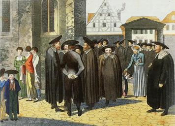 Keywords: Der Samstug (Saturday).jpg Der Samstag Saturday Germany c 1800 Handcolored engraving Hebrew Union College Skirball Museum Los Angeles Based on a Frederich Campe painting it depicts Jews gathered outside a synagogue on the Sabbath The men are wearing flat round hats called baretta The eight-pointed star on the corner of the synagogue is a traustein From Jewish Art edited by Grace Cohen Grossman ISBN 0-88363-695-6 p 172 Copied with a Canon EOS Digital Rebel with EF 50mm f/1 8 mounted on a copy stand at the UConn art department ISO 100 f/8 1/25s To avoid blurring all rotation and perspective correction was done with Hugin as a frontend to the nona stitching engine using the Sinc1024 interpolator The image was then cropped and level-adjusted with Gimp and saved with a JPEG quality of 0 9 PD-Art Judaism in art Shabbat Synagogues in art Created with Hugin Artworks missing infobox template Days in art |