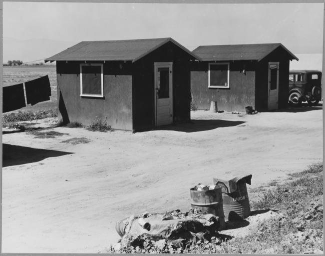 | Keywords: Dern County, California. Company housing for field workers. Two privies. Seventeen family units. Wat . . . - NARA - 521712.jpg Scope and content Full caption reads as follows Dern County California Company housing for field workers Two privies Seventeen family units Water from the well Families pay for electricity only Ranch raises cotton hay grapes General notes 521712 Local identifier 83-G-41468 Department of Agriculture Bureau of Agricultural Economics Division of Economic Information ca 1922 - ca 1953 NARA-Author Lange Dorothea 1895-1965 Photographer 1372774 <br /> Still Picture Records Section Special Media Archives Services Division NWCS-S National Archives at College Park 8601 Adelphi Road College Park MD 20740-6001 1940-04-12 Record group Record Group 83 Records of the Bureau of Agricultural Economics 1876 - 1959 Record group ARC 412 Photographic Prints Documenting Programs and Activities of the Bureau of Agricultural Economics and Predecessor Agencies compiled ca 1922 - ca 1947 documenting the period ca 1911 - ca 1947 Series ARC 521048 File unit File unit ARC Variant control numbers NAIL Control Number NWDNS-83-G-41468 Other versions <gallery> File Dern_County _California _Company_housing_for_field_workers _Two_privies _Seventeen_family_units _Wat_ _ _ _-_NARA_-_521712 tif tif File Dern_County _California _Company_housing_for_field_workers _Two_privies _Seventeen_family_units _Wat_ _ _ _-_NARA_-_521712 jpg jpg </gallery> NARA-cooperation PD-USGov Dorothea Lange |