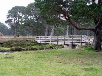Keywords: Derry bridge.jpg The footbridge over the Derry Burn Derry Wood Mar Lodge Estate Aberdeenshire Scotland Own 1997-08-21 TheCreator Luibeg and Derry Lodge