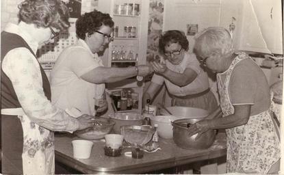 | Keywords: churches 1970s cooking women monochrome Four women cooking. On the back: "Presbyterion [sic] ladies making Easter eggs. Mrs K. Hood, Mrs Herman, Mrs Blake Moore, Mrs D. McCullough". This activity was taking place at the Presbyterian Church of the Redeemer in St. George Street, Deseronto, Ontario. Four women cooking. On the back: "Presbyterion [sic] ladies making Easter eggs. Mrs K. Hood, Mrs Herman, Mrs Blake Moore, Mrs D. McCullough". This activity was taking place at the Presbyterian Church of the Redeemer in St. George Street, Deseronto, Ontario. |