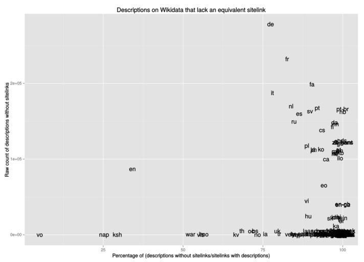 Keywords: Descriptions without sites point.svg s without sitelinks in the same language 2015-04-09 own Ironholds other versions cc-zero Uploaded with UploadWizard Wikidata statistics