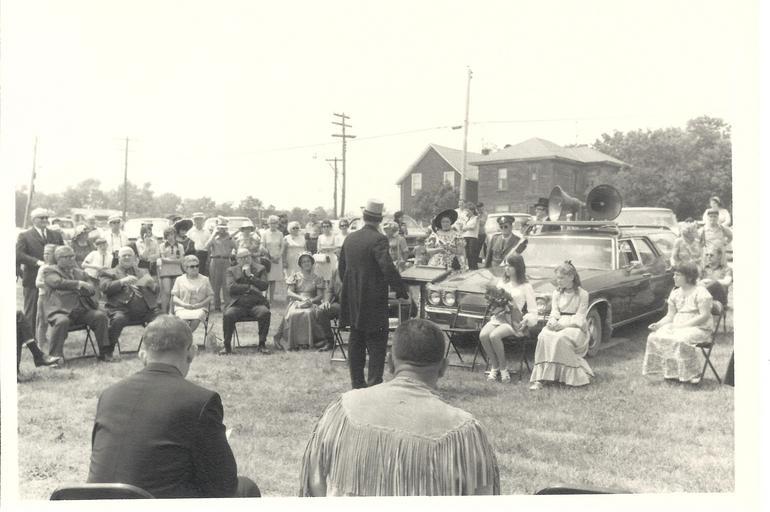 Keywords: 1970s events celebrations summer outdoor Photograph of Mayor Jim (James) Sharpe, addressing the audience at the unveiling of the plaque in Centennial Park, Deseronto, Ontario, on Saturday, 19th June, 1971. Photograph possibly taken by Lloyd Thompson for The Quinte Scanner. Photograph of Mayor Jim (James) Sharpe, addressing the audience at the unveiling of the plaque in Centennial Park, Deseronto, Ontario, on Saturday, 19th June, 1971. Photograph possibly taken by Lloyd Thompson for The Quinte Scanner. |