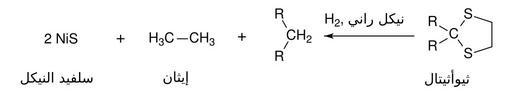 MAKE A MEME View Large Image Desulfurization of thioacetal using Raney Ni ar.svg Desulfurization of a generic cyclic thioacetal using Raney nickel as reagent Created by User Rune welsh on the English Wikipedia; vectorized in BKchem by User Mysid; translated by User ...