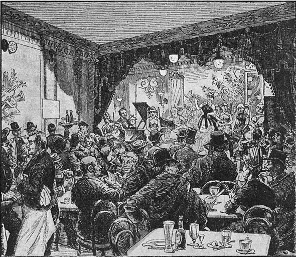 Keywords: Det indre af Kehlets Cafe chantant.jpg da Det indre af Kehlets Café chantant Sidste halvdel af 1800-tallet Scan from the book Det gamle København vol 2 by Knud Bokkenheuser 1869-1936 Saddhiyama 1919 Expired copyright PD-old History of Copenhagen Café-chantant |