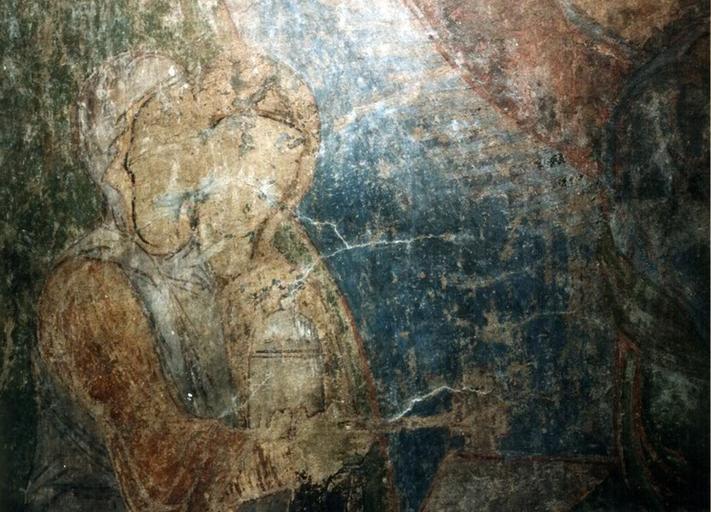 | Keywords: მენელსაცხებლე დედები (detail).jpg The mural in Betania Monastery Georgia The mural is called მე ელსაცხებლე დედები detail The official disk of Betania monastery XII-XIII centuries Created by order of Queen Tamar of Georgia PD-Art Betania southern wall murals |