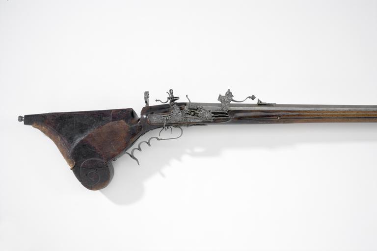 | Keywords: Detalj lås-stock hjullåsmålskjutningsbössa - Livrustkammaren - 40618.jpg  Åttsidig rosenräfflad pipa 9+9 räfflor Kort tvärt avskuret svansskruvblad på pipbasen en pärlstav Tre rektangulära stämplar samt en skada på pipans undersida <br/>Riktmedel Inlaxade riktmedel Ståndsikte med treflikigt blad på sidorna fasningar för ett löst påträbart högre ståndsikte eller siktskydd Stolpkorn av mässing med bred fot framför kornet på pipans ovansida punsat 8 punkter för justering av kornet Dioptersikte med alternativa hål framför och bakom tumläget på kolven <br/>Fästning Två häften samt en skruvklack Pipan fäst med krysskruv bakre låsskruven två pipstift av stål samt stödfjäderns skruv genom framstocken <br/><br/>Lås med plant låsbleck invändigt hjul hjulaxel avslutad med kula Hjullåshane helt täckt av bleck underkäken lös fast överkäke med s-formigt svängd arm avslutad med stor kula fyrsidigt käkskruvhuvud Hanfjäder med delvis fasade kanter stor studelplatta Fängpanna med skålad nederkant Batteri med omvändningseldstål På låsbleckets kant därframför graverat MARTIN DINCKHL // IN // SCHWAZ Batterifjäder anbringad ovanför hjulaxeln och fastskruvad bakom denna På låsbleckets bakre del en flintlåshane med plan kropp ovala käkar lös överkäke med c-formigt svängt grepp avslutat med kula käkskruv med ringformigt huvud Kroppen täckt av en konturerad platta Utvändigt slagfjäder fästskruv under studelplattan Riklig graverad dekor av rankor på flintlåshanens platta en krönt dubbelörn På låsets insida sparsammare dekor <br/>Fästning Två låsskruvar <br/>Avtryckare Utvändig avtryckare och avtryckarstång till flinlåset avtryckaren c-formig med upprullad ände Avtryckare med snälltryck till hjullåset Rektangulärt avtryckarbleck baktill avslutat med flikigt blad <br/><br/>Helstock av brunt trä valnöt kraftig kolv nedtill utdragen i en stor volut kraftigt markerat tumgrepp Kraftigt kindstöd På kolvänden stoppning och klädsel av rödbrunt skinn Beslag av stål På kolvhälen ett stålband samt en stödkula Två ovala låsskruvbrickor Kraftig varbygel med tre fingerlägen avslutning framtill med blad baktill i form av v med två skruvar Framtill på framstocken stålbeslag med fjäder för fästning av stöd original caption detalj lås-stock hjullåsmålskjutningsbössa - LRK 18305 ca 1730 steel e1247 - eldvapen - pipa lås riktmedel och beslag material stål - brass e4 - eldvapen - riktmedel material mässing - walnut e3 - eldvapen - stock material valnöt - horn e7 - eldvapen - stockbeslag material horn - hide Färg rödbrun e7 - eldvapen - stockbeslag material skinn size mm 1850 size mm 1330 pipa size mm 280 g 12120 LRK Livrustkammarens basutställning 1978 MARTIN DINKHL IN SCHWAZ anv e2 - eldvapen - lås; Martin Dinckel place of origin Österrike Schwaz original filename lm_dig2538 54913 inventory number LRK 18305 40618 CC-BY-SA Göran Schmidt <gallery caption Different images of same object > File Detalj lås hjullåsmålskjutningsbössa - Livrustkammaren - 74860 jpg File Detalj stativfäste hjullåsmålskjutningsbössa - Livrustkammaren - 57737 jpg File Detalj låssignering hjullåsmålskjutningsbössa - Livrustkammaren - 66298 jpg File Detalj stock hjullåsmålskjutningsbössa v sida - Livrustkammaren - 49176 jpg </gallery> Göran Schmidt Musket images from Livrustkammaren color images Flintlock muskets images from Livrustkammaren Media contributed by LSH dim-with multiple size templates Media contributed by LSH unmatched place Media contributed by LSH unmatched creator Color images from Livrustkammaren Media contributed by LSH 2013-10 |