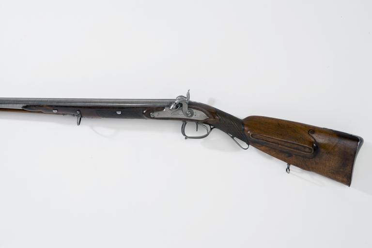 | Keywords: Detalj slaglåsdubbelbössa, v sida - Livrustkammaren - 13980.jpg  Damaskerad dubbelpipa med överliggande skålad spång på kammarens sidor fastlödda snäckor och på undersidan inslaget H L tre gånger B P två gånger samt 44 På h sida en oval stämpel ELG En rundad rörka <br/>Baskyl med rundat baskylblad med graverade blad bladformig ändplatta <br/>Riktmedel Kraftigt skålat sikte på baskylen <br/>Fästning Två häften för engelska pipstift Pipan fäst med baskylhakar samt två engelska pipstift av stål <br/><br/>Två flintlås ändrade till slaglås Plana låsbleck med fasade kanter på v lås graverat Guillaume på h Berleur S-formiga platta hanar med fasade kanter runt nötskruvarna svarvade ringar Nätskurna tumgrepp <br/>Fästning Två låsskruvar från v sida <br/>Dubbla avtryckare Konturerat avtryckarbleck <br/><br/>Brun halvstock av valnöt Engelsk kolv med kindstöd samt nätskuren kolvhals och förstock i nätmönstret inslaget stålstift Under kolven en oval mässingsplåt med graverat nr 6 <br/>Beslag av stål Bakplåt med flik på kolvryggen Rundad rörka med profilerad graverad spets Varbygeln bakåt utdragen och graverad med blad och blommor Rund hög framstolpe kluven bakstolpe Fri delvis dubbel bakre arm med spetsig bladformig ände Främre armens avslutning liknande en ananans med bladknippe Vid spetsrörkan och under kolven u-formiga rembyglar av stål <br/><br/>Tillbehör <br/>Laddstock av trä l 845 mm framtill skodd med konisk hornskoning l 26 mm i andra änden ett mässingsrör l 36 mm med en spiralvriden stålkrats l 38 mm original caption detalj slaglåsdubbelbössa - LRK 3847 v sida<br/> Nyckelord Bössa Föremålsbild early other date century 19 walnut e3 - eldvapen - stock material valnöt - steel e1247 - eldvapen - pipa lås riktmedel och beslag material stål size mm 201 g 3040 size mm 842 pipa size mm 1244 LRK Gustaf V av Sverige Oskar I av Sverige-Norge Guillaume Berleur anv e2 - eldvapen - lås; Guillaume Berleur Beurleur B P anonym kontrollör E L G stjärna i oval Stöckelnr 1494 anv e1 - eldvapen - pipa; anonym kontrollör H L anv e1 - eldvapen - pipa; anonym kontrollör Guillaume Berleur anv e2 - eldvapen - lås; Guillaume Berleur Beurleur B P anonym kontrollör E L G stjärna i oval Stöckelnr 1494 anv e1 - eldvapen - pipa; anonym kontrollör H L anv e1 - eldvapen - pipa; anonym kontrollör place of origin original filename lm_dig2149 39324 inventory number LRK 3847 13980 CC-BY-SA Göran Schmidt <gallery caption Different images of same object > File Detalj slaglåsdubbelbössa - Livrustkammaren - 5419 jpg </gallery> Göran Schmidt Double-barreled shotguns Shotgun images from Livrustkammaren Musket images from Livrustkammaren color images Flintlock muskets images from Livrustkammaren Media contributed by LSH dim-with multiple size templates Media contributed by LSH unmatched creator Color images from Livrustkammaren Media contributed by LSH 2013-10 |