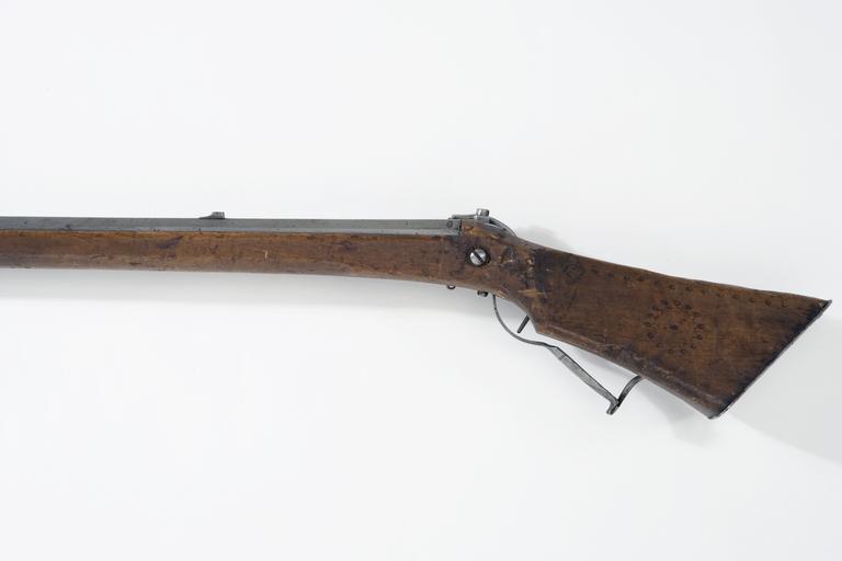 Keywords: Detalj snapplåslodbössa, v sida - Livrustkammaren - 48218.jpg Åttsidig räfflad pipa 8 räfflor bombredd ca 2 2 mm Stämpel på kammarens övre v fas G R S Stöckelnr 927 eller 928 Vinkelböjt svansskruvblad <br/>Riktmedel 125 mm lång siktränna från sidan inlaxade riktmedel kulissikte av stål och spolformigt korn av mässing <br/>Fästning Pipan fäst med krysskruv underifrån främre varbygelskruven samt två pipstift av trä <br/><br/>Lägglås av Göingetyp plant låsbleck med enkel repstavsdekor runt hanen Hane med lös överkäke rektangulärt tvärsnitt Käkskruv med litet cylindriskt huvud Gemensam slag- och eldstålsfjäder med nedåtriktad båge vid låsbleckets framände infilad dekor Rektangulär fängpanna med horisontalt vridbart lock med skivformigt fingergrepp Batteri med platt fängpannelock rektangulärt eldstål vinkelböjd arm <br/>Fästning Två låsskruvar <br/>Rak avtryckare <br/><br/>Brun enkel helstock av svensk Göingeliknande typ med triangulär kolv häl med spetsig vinkel Enkel punsad och ristad dekor Beslag av stål bakplåt varbygel med skålad bakre del enkel graverad dekor Bandförstärkning om framstocken vid den slutna laddstocksrännans mynning Kolvlådelock av stockens trä Från piprännan in till laddstocksnoten borrat 13 hål <br/><br/>Tillbehör <br/>Flinta nr 18786 i röd klädesmantel I kolvlådan krats med rund platta i framänden original caption detalj snapplåslodbössa - LRK 3040 v sida<br/> Nyckelord Snapplåslodbössa Föremålsbild ca 1680 wood e3 - eldvapen - stock material trä - steel e1247 - eldvapen - pipa lås riktmedel och beslag material stål - brass e4 - eldvapen - riktmedel material mässing g 3320 size mm 140 size mm 941 pipa size mm 1209 LRK Basutställning Nordiska vapenformer G R S Stöckelnr 927 anv e1 - eldvapen - pipa; Georg Riddersporre G R S Stöckelnr 927 anv e1 - eldvapen - pipa; Georg Riddersporre place of origin original filename lm_dig2104 39641 inventory number LRK 3040 48218 CC-BY-SA Göran Schmidt <gallery caption Different images of same object > File Detalj snapplåslodbössa - Livrustkammaren - 56779 jpg File Snapplåslodbössa lägglås utfjäderslås - Riddersporre - Livrustkammaren - 8606 tif </gallery> Göran Schmidt Musket images from Livrustkammaren color images Flintlock muskets images from Livrustkammaren Media contributed by LSH dim-with multiple size templates Media contributed by LSH unmatched creator Media contributed by LSH unmatched keyword Color images from Livrustkammaren Media contributed by LSH 2013-10