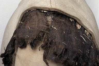 | Keywords: Detaljbild på tyg, Gustav II Adolfs älghudskyller från Dirschau år 1627 - Livrustkammaren - 13914.tif Kyller använt av Gustav II Adolf vid Dirschau den 6 augusti 1627 w Buff coat used by Gustavus Adolphus of Sweden at the Kyller av älghud med ärmar av siden numera endast fragment kvar Kyllret är kraglöst och avskuren i midjan med långa skört 4 stycken <br/><br/>Längd mitt fram liv 36 5 cm skört 41 5 cm <br/>Bröstvidd 105 cm <br/>Längd mitt bak liv 41 5 cm skört 40 5 cm <br/>Ryggbredd 40 cm <br/>Midja 106 cm <br/>Vidd skörtens nederkant 281 cm <br/>Längd i sida liv 24 cm skört 43 3 cm <br/>Axelbredd 17 6 cm <br/>Ärmlängd 69 cm största ärmvidd 34 cm ärmvidd nedtill 28 cm <br/>Ärmsprundet är 18 cm Åtta knapphål vänster ärm har 4 silvertrådsklädda knappar och höger ärm har 7 knappar kvar <br/>Ärmens innersöm har en 15 5 cm lång öppning med 8 öglor av silvertråd på var sida över var ögla sitter en sydd träns av sysilke <br/><br/>Sömmarna runt framkant hals på axlar och längs skörtens sidor är dekorationsstickade med tre parallella sömmar i vit lintråd Snörning mitt fram med nio grupper med två hål i varje grupp på var sida Snörningen har blodfläckar Skörtets söm mitt bak på höger bakstycke har gått upp ca 1 cm Ärmarna har rester av sitt yttertyg ett ljust brun atlas samt ett foder av ljust brun taft Kyllret har axelkarmar och endast mycket små rester av atlasen finns kvar däremot återstår det mörkt bruna kanvasen som utgjort mellanlägg i tre lager tyg Kanvasen är belagd med en yta för styvnadens skull Livet i kyllret är fodrat med vitt linne förmodligen som mellanfoder w Buff coat of elk hide with sleeves made of silk of which now only fragments remain The coat is collarless and seamed at the waist with long skirts in four pieces Detail of the shoulder wing structure Center front length body 36 5 cm 41 5 cm skirts Chest 105 cm Center back length 41 5 cm body skirts 40 5 cm Back width 40 cm Waist 106 cm Width skirt hem 281 cm Length at side body 24 cm 43 3 cm skirts Shoulder Width 17 6 cm Sleeve length 69 cm Maximum sleeve width 34 cm Sleeve width at bottom 28 cm Sleeve opening 18 cm Sleeves have eight buttonholes; the left sleeve has four silver-wrapped thread covered buttons and the right sleeve has seven buttons left The coat's inseam has a 15 5 cm long opening with 8 loops of silver wire On each side of the loop is a stitched tack of sewing silk The seams around the front edge of the neck the shoulders and along the sides of skirt are decorated with three parallel rows of stitching in white linen thread The lacing at the front has nine groups of two holes in each group on each side The lacing has blood stains Skirt seam at center back on the right rear panel has gone up about 1 cm The sleeves have the remains of their outer shell a light brown silk atlas satin and a lining of light brown taffeta The coat has shoulder wings with only small remnants of the atlas remaining over the dark brown the canvas that formed inserts in the three-layer fabric The canvas is coated with a surface for stiffenings' sake The body of the coat is lined with white linen presumably as interlining original caption Detaljbild på tyg Gustav II Adolfs älghudskyller från Dirschau år 1627 - LRK 31194 Slaget vid Dirschau Battle of Dirschau 1627 silk d1 - dräkt - yttermaterial material siden size mm 365 mitt fram LRK Gustav II Adolf av Sverige Gustavus Adolphus of Sweden Basutställning Gustav II Adolf Minnesutställning 1932 1932 place of origin original filename lm_dig0493 67807 inventory number LRK 31194 13914 CC-BY-SA Göran Schmidt <gallery caption Different images of same object > File Kyller Dirschau - Livrustkammaren - 60031 tif File Kyller använt av Gustav II Adolf vid Dirschau den 6 augusti 1627 - Livrustkammaren - 61181 tif File Detaljbild på axelstycke Gustav II Adolfs älghudsskyller från Dirschau år 1627 - Livrustkammaren - 65278 tif File Detaljbild på ärm Gustav II Adolfs älghudsskyller från Dirschau år 1627 - Livrustkammaren - 22477 tif File Kyller Dirschau - Livrustkammaren - 42910 tif File Kyller använt av Gustav II Adolf vid Dirschau den 6 augusti 1627 - Livrustkammaren - 44060 tif File Gustav II Adolfs dräkt från slaget vid Dirschau 1627 - Livrustkammaren - 56717 tif File Kyller använt av Gustav II Adolf vid Dirschau den 6 augusti 1627 - Livrustkammaren - 35501 tif File Detaljbild ena armen på Gustav II Adolfs älghudsskyller från Dirschau år 1627 - Livrustkammaren - 73840 tif File Kyller Dirschau - Livrustkammaren - 51470 tif File Kyller använt av Gustav II Adolf vid Dirschau den 6 augusti 1627 - Livrustkammaren - 52620 tif </gallery> Göran Schmidt Media contributed by LSH unmatched event Media contributed by LSH unmatched material Media contributed by LSH unmatched objKeyword Color images from Livrustkammaren Buff coats Clothes of Gustav II Adolf Media contributed by LSH 2013-10 |