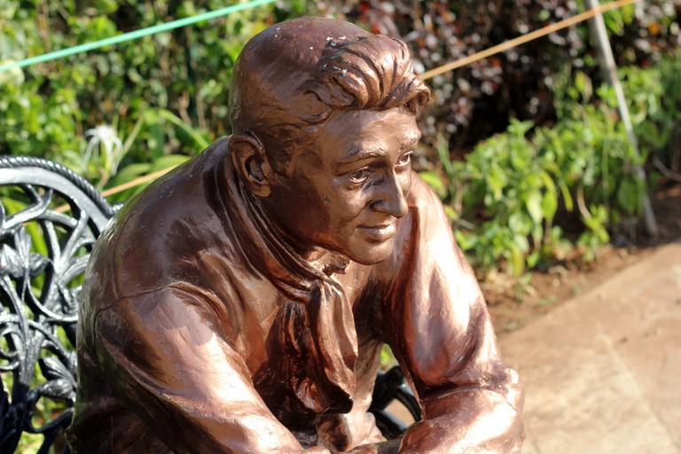 Keywords: dev anand statue bronze brown view bollywood actor india