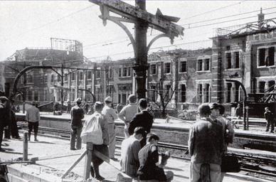 | Keywords: Devastated Tokyo station building from platform.jpg ja 戦災で破壊された 京駅丸の内駅舎をプラットホーム側から見る プラットホームにも屋根が無い en Tokyo station Marunouchi building that was devastated by airraid seen from platform side The platform itself has no roof 1945 Scanned from p 124 of History of stations Terminals in Tokyo / 図説 駅の歴史 京のターミナル 124ページからスキャン author Custom license marker 2012 11 02 PD-Japan-oldphoto Uploaded with UploadWizard Ruin of Tokyo Station Marunouchi Building Interior of Tokyo Station Black and white photographs of Japan in the 1940s 1945 in Tokyo |