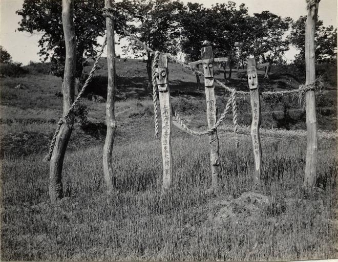 Keywords: Devil posts, Korea, (s.d.) (Taylor box21num26).jpg en <br> Devil posts Korea s d Evil spirits are an active force in Korean religion These posts are placed at village approaches to frighten away the malign spirits In earlier days they were found everywhere in Korea Except in very remote areas most of these posts have now disappeared removed by the Japanese to make room for building wider roads The names commonly given these posts may be indicative of the relative position occupied by women in Korean society The posts are called Mr General Heaven and Mrs General Hell Date created 1908/1922 Publisher of the Digital Version University of Southern California Libraries Repository Name Methodist Church U S Legacy Record ID kda-m93 Photographer Methodist Episcopal Church Format photograph Archival file kda_Volume42/Taylor_box21num26 jpg Rights Neither the General Conference nor any General Agency of The United Methodist Church successor to the Methodist Episcopal Church claims any interest in the photos or images Filename Taylor_box21num26 Coverage date 1908/1922 Contributing entity University of Southern California Repository Address Nashville Tennessee Part of collection Korean Digital Archive Donor Taylor Ewing Bevard Type images Part of subcollection The Reverend Corwin Nellie Taylor Collection Geographic Subject Country Korea Compiler Taylor Corwin; Blood-Taylor Nellie 1908/1922 Methodist Episcopal Church http //digitallibrary usc edu/cdm/ref/collection/p15799coll48/id/725 PD-Japan-oldphoto Korean archive in the USC digital library Images from USC Digital Library uploaded by Fæ |
