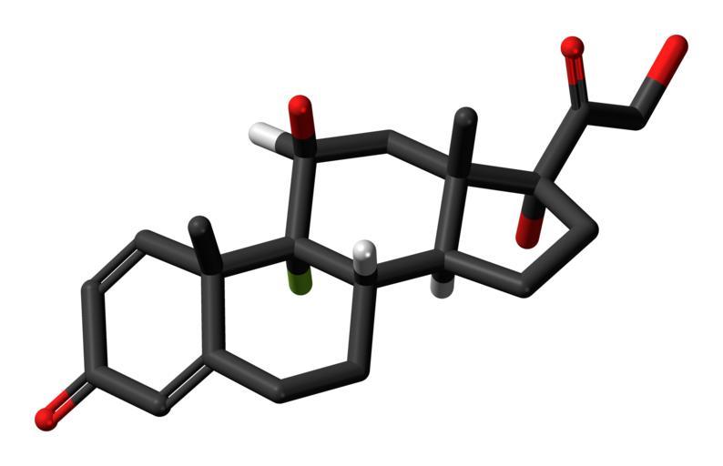 Keywords: Dexamethasone 3D skeletal.png Ball-and-stick model of the dexamethasone molecule an anti-inflammatory drug Colour code 505050 Carbon C black<br> F0F0F0 Hydrogen H white<br> F51E1E Oxygen O red<br> C8FA64 Fluorine F yellow-green<br> 2011-07-15 own DS Visualizer Jynto talk Ball-and-stick version Space-filling version cc-zero Images by Jynto 3D-sticks models Dexamethasone |