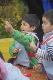 | Keywords: people groupshot niñas y niños del Jardín Infantil “Mi Refugio” en la comuna de Cerrillos, perteneciente a la Junta Nacional de Jardines Infantiles (JUNJI), jugaron a ser científicos y realizaron una demostración de experimentos adecuados a su edad, en el marco de la celebración del “Día de la Ciencia en mi jardín”. La actividad se llevó a cabo en el contexto de la XXI Semana Nacional de la Ciencia y la Tecnología 2015, el mayor evento de divulgación y valoración científica del país, del Programa Explora CONICYT, y que en esta nueva versión aborda la temática de la luz. Para esto se elaboró un cuadernillo con actividades científicas apropiadas para niñas y niños pequeños y que se está repartiendo en 3 mil establecimientos de Educación Parvularia a lo largo del país. Los pequeños científicos contaron con la presencia de Desirée López de Maturana Luna, vicepresidenta Ejecutiva de la JUNJI; Alejandra Mizala, integrante del Consejo de CONICYT; Arturo Aguirre, alcalde de Cerrillos; María Isabel Flores, directora del Jardín Infantil Mi Refugio, y de la comunidad educativa del establecimiento. Uno de los experimentos realizado por los párvulos de la JUNJI fue ¨Magnetizados” en el cual descubren por qué el imán atrae objetos metálicos. Este consiste en poner en una bandeja elementos metálicos y plásticos separados por aserrín, para que los niños pueda descubrir con el imán la forma de atraer el objeto sin mirar ni usar las manos. El párvulo desliza el imán sobre el aserrín para atraer el objeto metálico. Luego puede categorizar los elementos que no se unieron y realizar hipótesis respecto de por qué no se pegan al imán. Las educadoras trabajan con los niños y niñas a través de la exploración libre y espontánea, para que vayan descubriendo por si mismos las respuestas. La Vicepresidenta Ejecutiva de la JUNJI afirmó que “los mayores científicos son los niños y niñas. Ellos descubren, están en permanente asombro, mirando cada detalle. Por lo tanto, tenemos que generar experiencias de aprendizajes que permitan que se asombren y generen hipótesis. Con esta alianza con Explora CONICYT podemos ir avanzando en esas materias, y tener apoyos científicos que permitan a los adultos dar respuesta a estos experimentos y experiencias, que parecen mágicas”. Por su parte el alcalde Cerrillos, Arturo Aguirre, valoró la actividad y expresó que “el abrir los espacios para generar la inquietud del conocimiento de las ciencias en nuestros jardines y escuelas municipales, donde se cobija la parte de nuestro pueblo más vulnerable, naturalmente que es un camino correcto y necesario para poder liberar todas las capacidades de aprendizaje que yacen en nuestros niños. Por lo tanto no es solo el gusto por la inquietud intelectual, sino que también es cómo vamos caminando para que nuestro país avance en espacios de igualdad y que vaya disminuyendo este abismo en el acceso a estas técnicas de conocimiento”. Alejandra Mizala, miembro del Consejo de CONICYT, expresó, “el esfuerzo que está haciendo el Programa Explora al traer este folleto a los jardines infantiles es súper importante, porque en la medida de que más temprano acerquemos la ciencia a los niños, más fácil va a ser que ellos se enamoren de ésta. Lo que hoy vimos, por ejemplo, fue que gracias a una actividad que parecía un juego, ellos conocieron fenómenos relacionados con la luz, lo que en un futuro podría ayudarles a entender conceptos con un fondo científico”. niñas y niños del Jardín Infantil “Mi Refugio” en la comuna de Cerrillos, perteneciente a la Junta Nacional de Jardines Infantiles (JUNJI), jugaron a ser científicos y realizaron una demostración de experimentos adecuados a su edad, en el marco de la celebración del “Día de la Ciencia en mi jardín”. La actividad se llevó a cabo en el contexto de la XXI Semana Nacional de la Ciencia y la Tecnología 2015, el mayor evento de divulgación y valoración científica del país, del Programa Explora CONICYT, y que en esta nueva versión aborda la temática de la luz. Para esto se elaboró un cuadernillo con actividades científicas apropiadas para niñas y niños pequeños y que se está repartiendo en 3 mil establecimientos de Educación Parvularia a lo largo del país. Los pequeños científicos contaron con la presencia de Desirée López de Maturana Luna, vicepresidenta Ejecutiva de la JUNJI; Alejandra Mizala, integrante del Consejo de CONICYT; Arturo Aguirre, alcalde de Cerrillos; María Isabel Flores, directora del Jardín Infantil Mi Refugio, y de la comunidad educativa del establecimiento. Uno de los experimentos realizado por los párvulos de la JUNJI fue ¨Magnetizados” en el cual descubren por qué el imán atrae objetos metálicos. Este consiste en poner en una bandeja elementos metálicos y plásticos separados por aserrín, para que los niños pueda descubrir con el imán la forma de atraer el objeto sin mirar ni usar las manos. El párvulo desliza el imán sobre el aserrín para atraer el objeto metálico. Luego puede categorizar los elementos que no se unieron y realizar hipótesis respecto de por qué no se pegan al imán. Las educadoras trabajan con los niños y niñas a través de la exploración libre y espontánea, para que vayan descubriendo por si mismos las respuestas. La Vicepresidenta Ejecutiva de la JUNJI afirmó que “los mayores científicos son los niños y niñas. Ellos descubren, están en permanente asombro, mirando cada detalle. Por lo tanto, tenemos que generar experiencias de aprendizajes que permitan que se asombren y generen hipótesis. Con esta alianza con Explora CONICYT podemos ir avanzando en esas materias, y tener apoyos científicos que permitan a los adultos dar respuesta a estos experimentos y experiencias, que parecen mágicas”. Por su parte el alcalde Cerrillos, Arturo Aguirre, valoró la actividad y expresó que “el abrir los espac