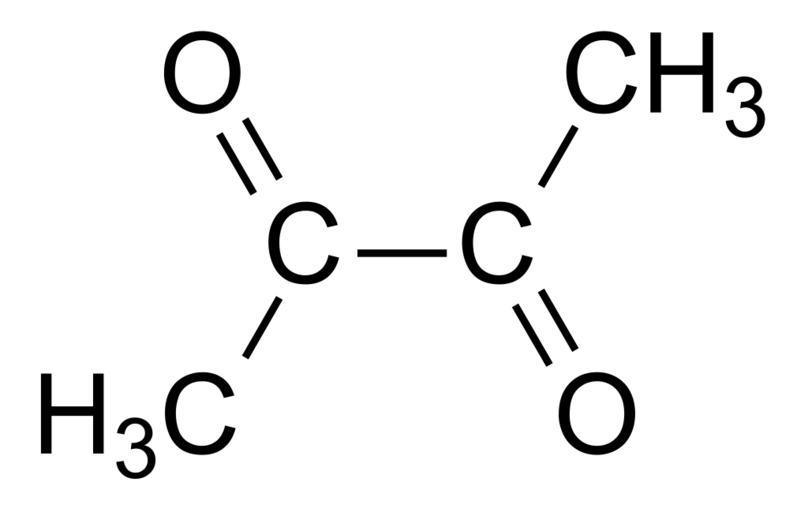 Keywords: Diacetyl structure.svg Chemical structure of diacetyl Self-made in BKChem scaled in perl 2007-08-25 User Mysid Diacetyl