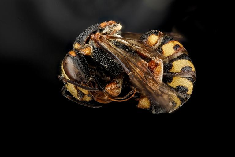 Keywords: bug bugs bee bees pollinator pollinators animal animals animalia arthropod arthropods arthropoda insect insects insecta hymenoptera aculeata anthophila apoidea megachilidae megachilinae anthidiini dianthidium dianthidium ulkei dianthidiumulkei taxonomy:binomial=dianthidium ulkei taxonomy:binomial=dianthidiumulkei biml droege zerene stacker zerenestacker usgs pwrc patuxent patuxent wildlife research center patuxentwildliferesearchcenter barc south dakota southdakota badlands national park badlandsnationalpark nps male macro macro photography macrophotography stackshot usgsbiml black background South Dakota, Badlands national Park South Dakota, Badlands national Park