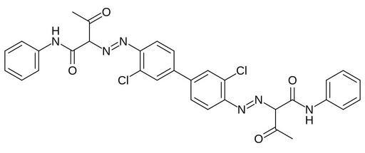 Keywords: Diarylide yellow.svg Chemical structure of AAA diarylide yellow C I Pigment Yellow 12 Own 16 23 10 February 2014 UTC Ed Edgar181 Azo dyes Pigments Un-N-substituted anilides