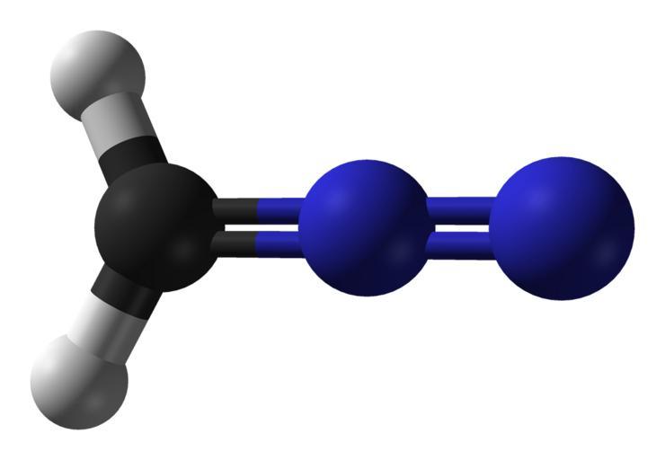 | Keywords: Diazomethane-from-CRC-MW-IR-3D-balls-double-double.png Ball-and-stick model of the diazomethane molecule H<sub>2</sub>CN<sub>2</sub> showing the resonance form with two double bonds Structural information determined by microwave and infrared spectroscopy from http //www hbcpnetbase com/ CRC Handbook 88<sup>th</sup> edition Image generated in http //accelrys com/products/discovery-studio/visualization/discovery-studio-visualizer html Accelrys DS Visualizer Own 2009-05-25 Ben Mills Benjah-bmm27 Images by Ben Mills Ball-and-stick models Diazomethane |