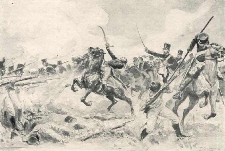 Keywords: Dibujo batalla de Maipú.jpg es Dibujo de Pedro Subercaseaux de la Batalla de Maipú La Batalla de Maipú fue un enfrentamiento armado que tuvo lugar el 5 de abril de 1818 en el valle del Maipo cercano a Santiago de Chile entre las fuerzas patriotas revolucionarias conformadas por soldados argentinos de las Provincias Unidas y soldados del Ejercito de Chile contra los realistas el cual decidió la Independencia de Chile y en gran parte la del Cono Sur Se enfrentaron el Ejército Unido coalición del Ejercito de los Andes y el Ejercito Chileno al mando del general en jefe José de San Martín contra el ejército realista bajo las órdenes del general Mariano Osorio http //www memoriachilena cl/archivos2/pdfs/MC0026230 pdf Creator Pedro Subercaseaux Abril 1910-1911 PD-Chile Pedro Subercaseaux Errázuriz Battle of Maipú |