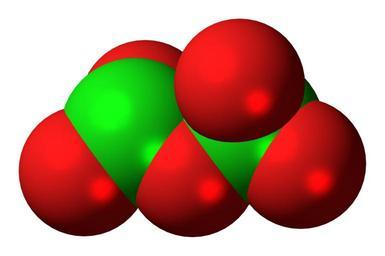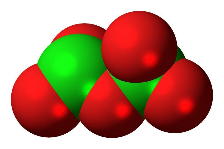 Keywords: Dichlorine pentoxide 3D spacefill.png Space-filling model of the dichlorine pentoxide molecule one of several chlorine oxides Colour code F51E1E Oxygen O red<br> 14F014 Chlorine Cl green<br> 2011-06-27 own DS Visualizer Jynto talk Ball-and-stick version cc-zero Images by Jynto Space-filling models Dichlorine_pentoxide |