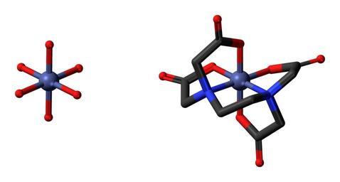 Keywords: Dicobalt edetate 3D skeletal.png Skeletal stick model hydrogen atoms omitted of the component ions of dicobalt edetate an antidote to cyanide poisoning with a hexaaquacobalt II complex cation left and a cobalt II EDTA anion right Colour code 505050 Carbon C black<br> F51E1E Oxygen O red<br> 3C50FA Nitrogen N blue<br> 7078C0 Cobalt Co grey-blue<br> 2011-07-03 own DS Visualizer Jynto talk Ball-and-stick version Space-filling version Stick version cc-zero Images by Jynto 3D-sticks models Cobalt complexes EDTA complexes aqua complexes |