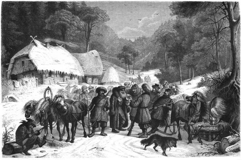Keywords: Die Gartenlaube (1870) b 301.jpg Ein Schmugglerzug an der preußisch-russischen Grenze Nach der Natur aufgenommen C Schiemann 301 302 Smuggling