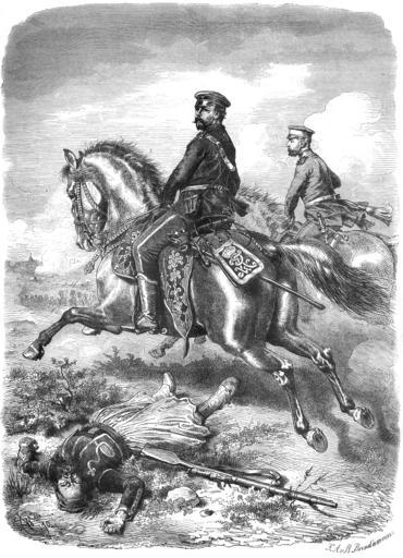 Keywords: Die Gartenlaube (1870) b 601.jpg Prinz Friedrich Karl Commandeur der zweiten Armee mit dem Chef seines Generalstabes General Stiehle Originalzeichnung von Professor Wilhelm Camphausen in Düsseldorf 601 602 Wilhelm Camphausen Frederick Charles of Prussia Gustav von Stiehle